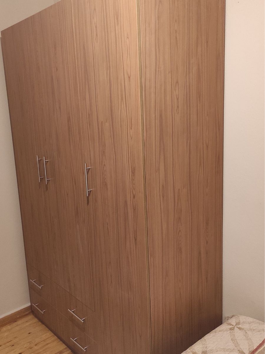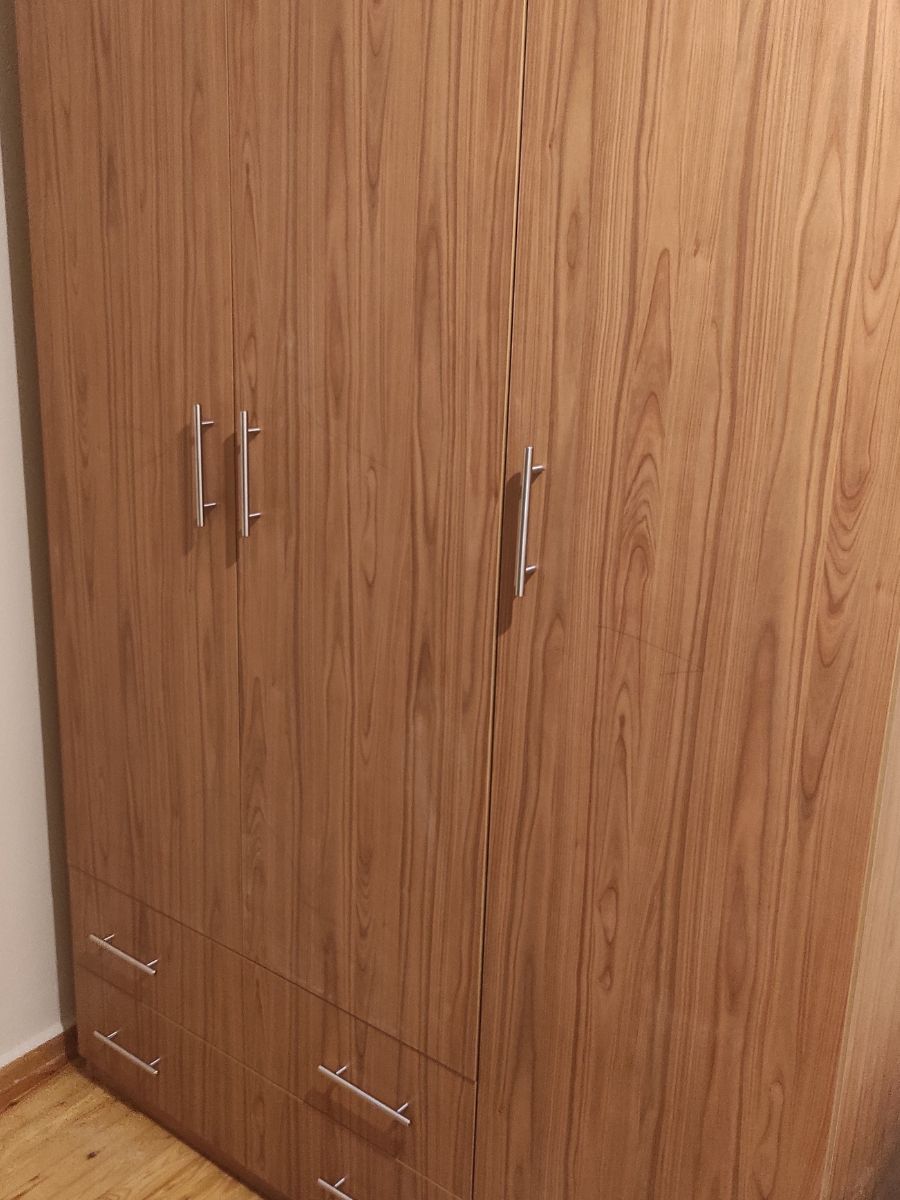 Περιλαμβάνει τρεις μεγάλες πόρτες, εσωτερικά φέρει ράγα για κρεμάστρες και κάτω μεγάλα συρτάρια για την αποθήκευση ρούχων και αξεσουάρ.