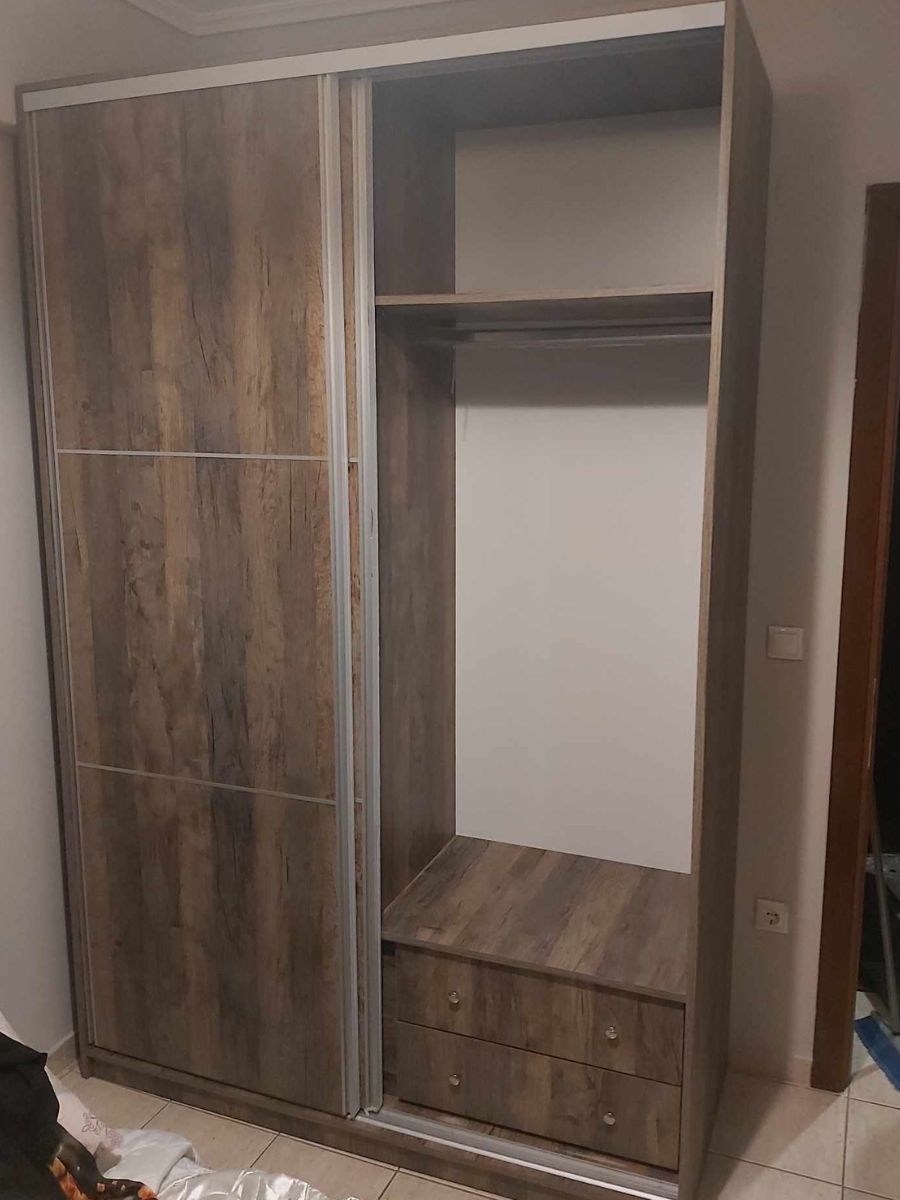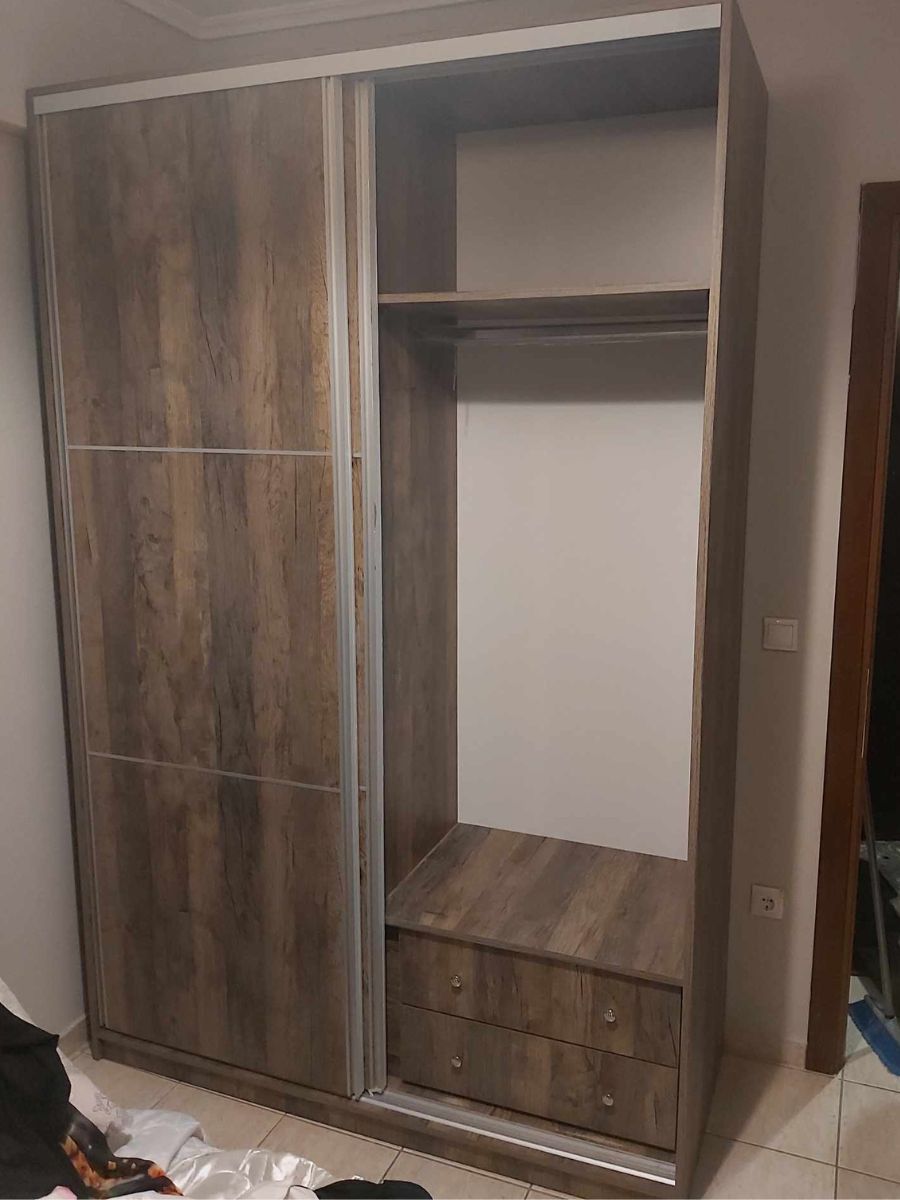 Περιλαμβάνει δύο μεγάλες πόρτες, εσωτερικά φέρει ράγα για κρεμάστρες και κάτω δύο μεγάλα συρτάρια για την αποθήκευση ρούχων και αξεσουάρ.