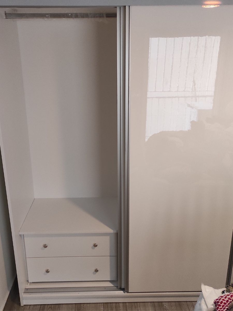 Περιλαμβάνει δύο μεγάλες πόρτες, εσωτερικά φέρει ράγα για κρεμάστρες και κάτω δύο μεγάλα συρτάρια για την αποθήκευση ρούχων και αξεσουάρ.