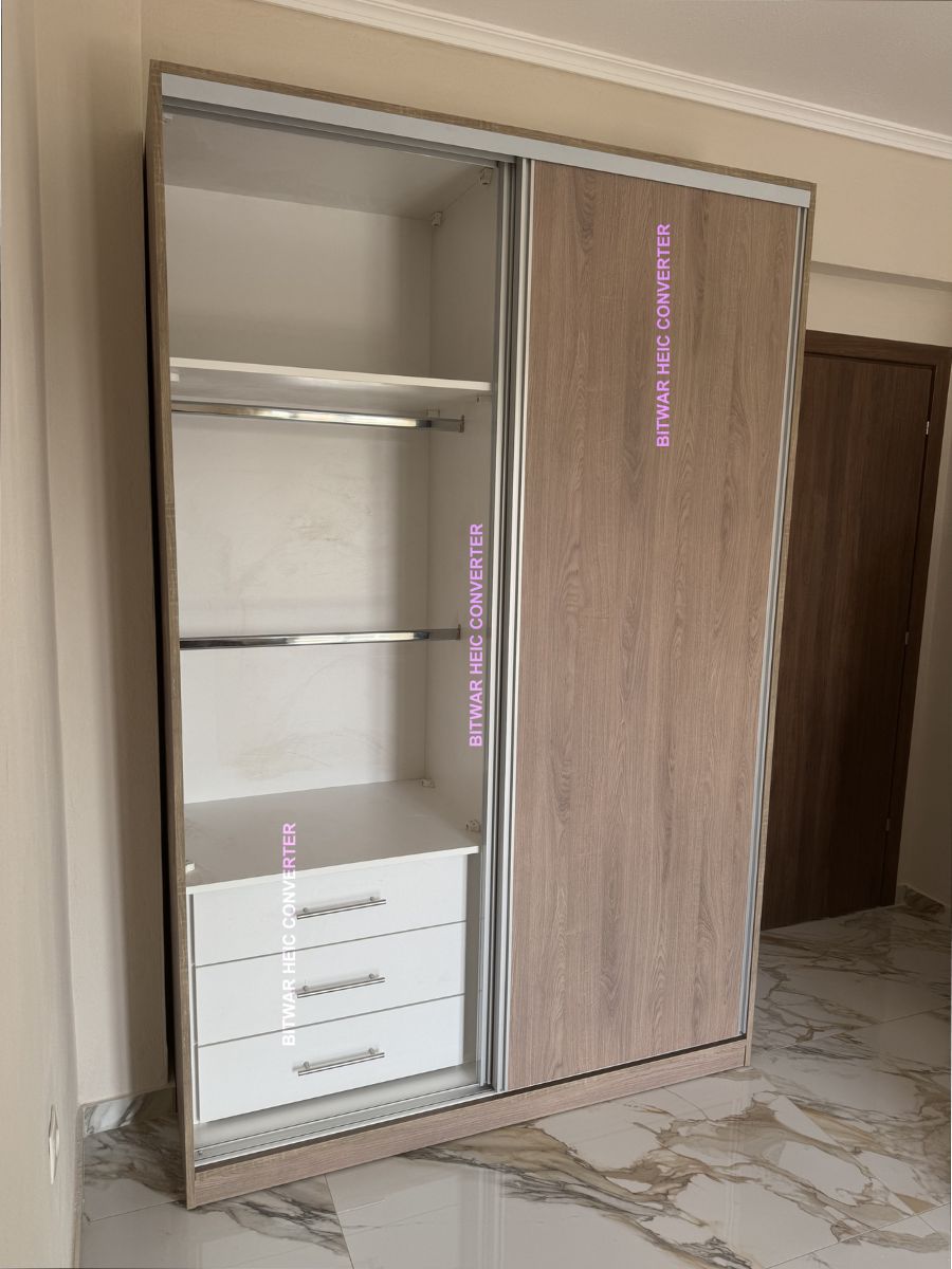 Περιλαμβάνει δύο μεγάλες πόρτες, εσωτερικά φέρει ράγα για κρεμάστρες και κάτω δύο μεγάλα συρτάρια για την αποθήκευση ρούχων και αξεσουάρ.
