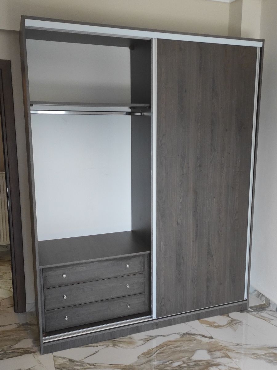 Περιλαμβάνει δύο μεγάλες πόρτες, εσωτερικά φέρει ράγα για κρεμάστρες και κάτω δύο μεγάλα συρτάρια για την αποθήκευση ρούχων και αξεσουάρ.