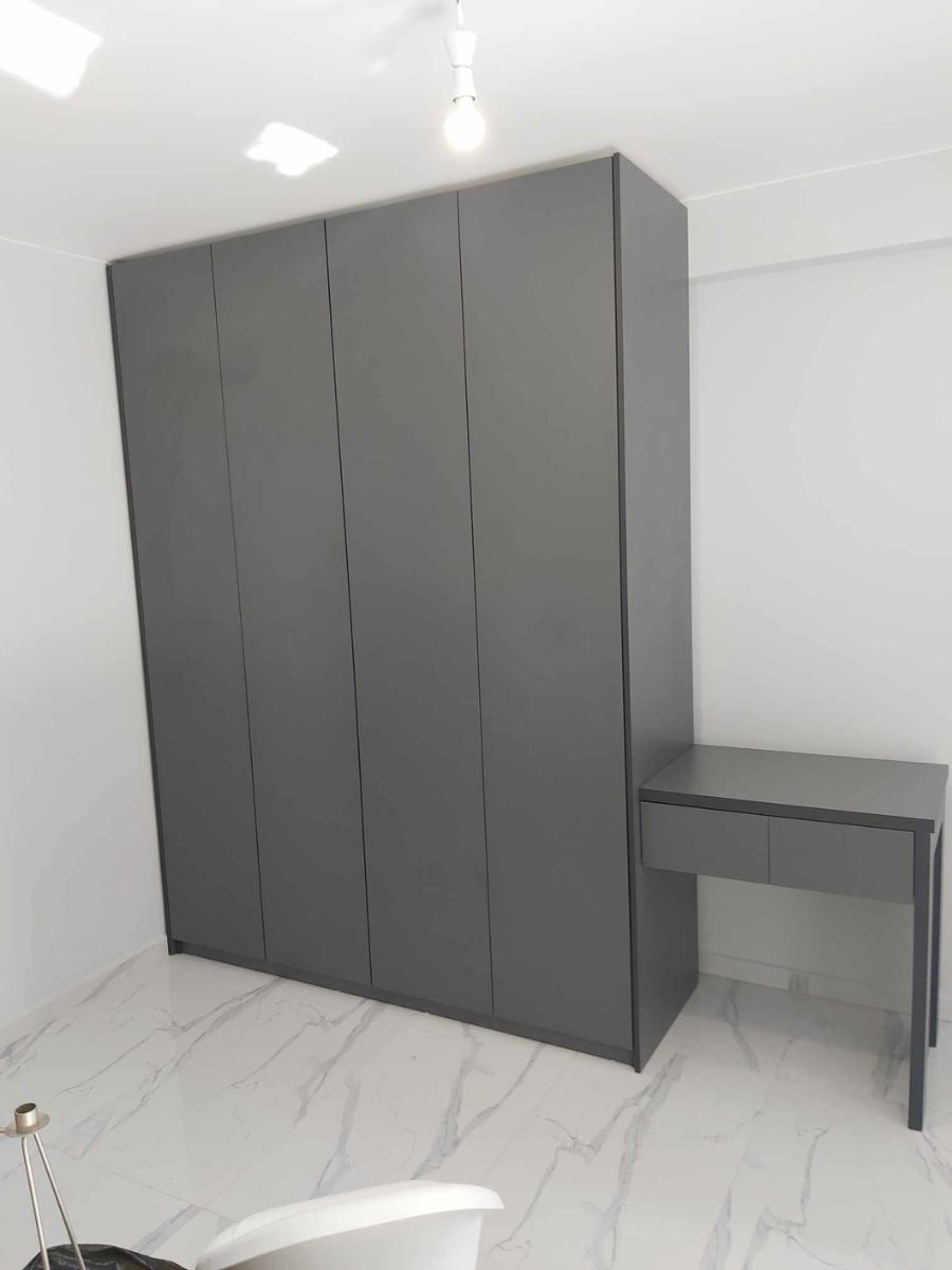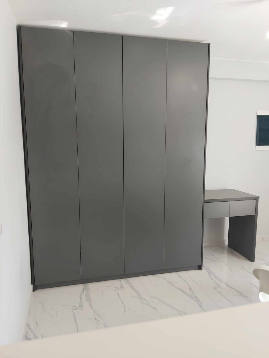 Περιλαμβάνει τέσσερις μεγάλες πόρτες, εσωτερικά φέρει ράγα για κρεμάστρες και κάτω μεγάλα συρτάρια για την αποθήκευση ρούχων και αξεσουάρ.