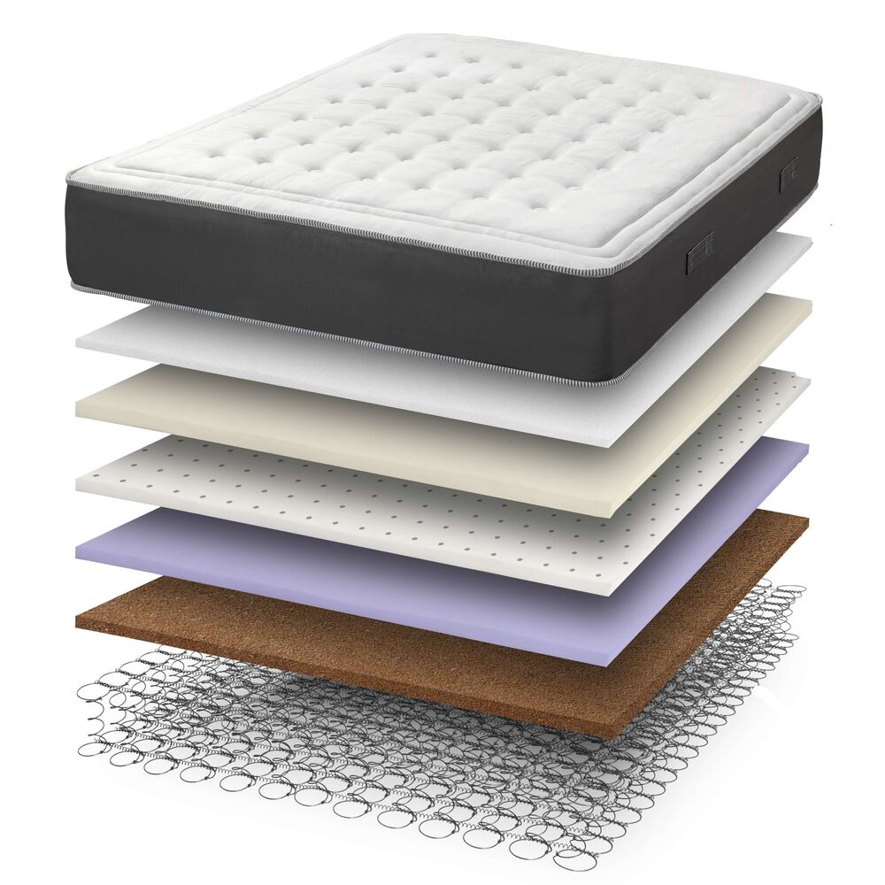 • Ελατήρια τύπου bonnel πάχους σύρματος 2,3mm με 374 ελατήρια σε διάσταση 160 x 200. λαστικοποιημένος κ E οκοφοίνικας, ψεκασμένος με λάτεξ. Οι φυτικές ίνες που συλλέγονται από τον φλοιό της κάρυδας και έχουν την μορφή πλέγματος, εξασφαλίζοντας ανθεκτικότητα και ελαστικότητα του στρώματος.